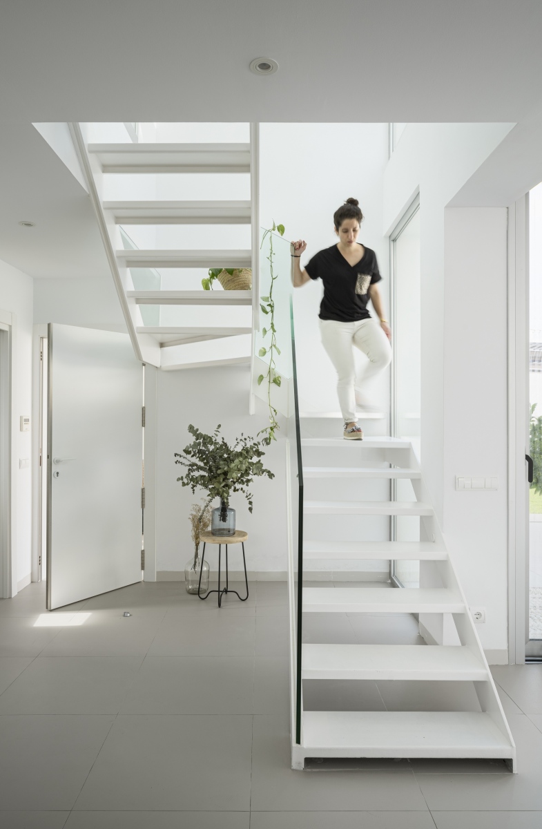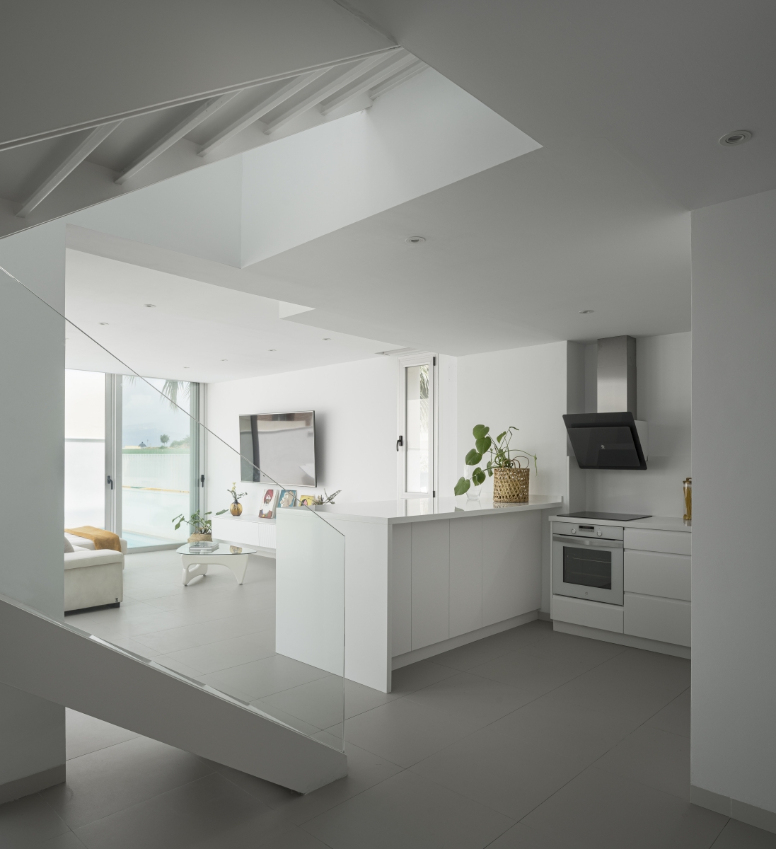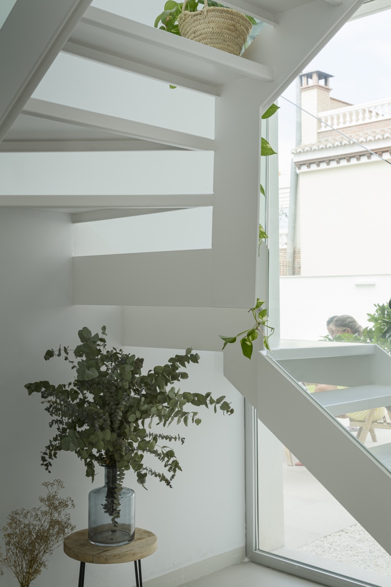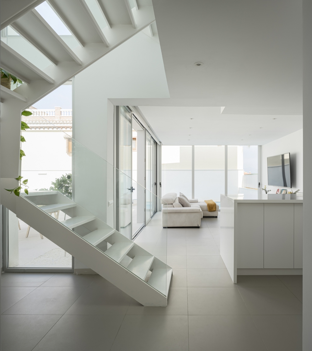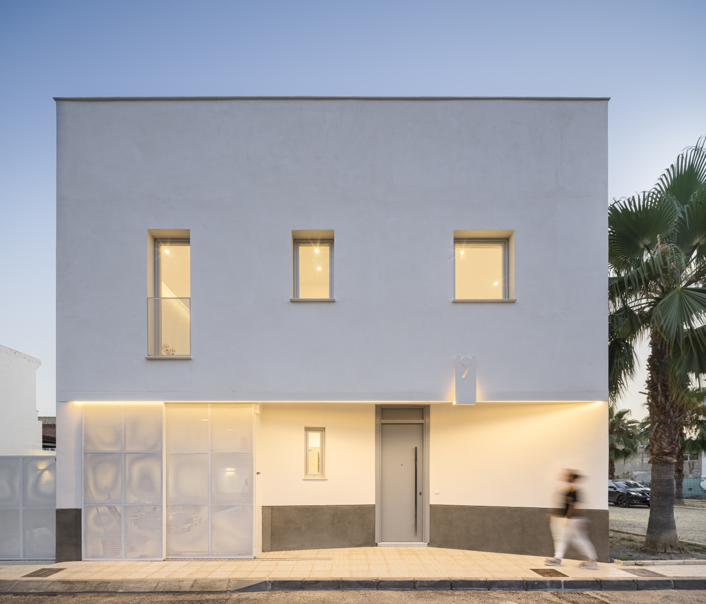 El diálogo entre las torre-alminares de la época mudéjar, tan presentes en el municipio de Vélez-Málaga y la Axarquía, y la chimenea de la antigua fábrica de orujo con el proyecto, se traduce en la materialización de un gran volumen de ladrillo cerámico cara vista hacia las tres fachadas exteriores del solar. Hacia el interior, un gran patio blanco perfora el volumen, generando viviendas con dobles ventilaciones e iluminación natural.