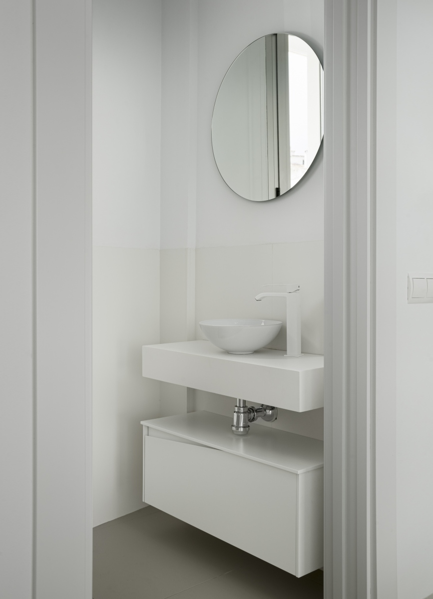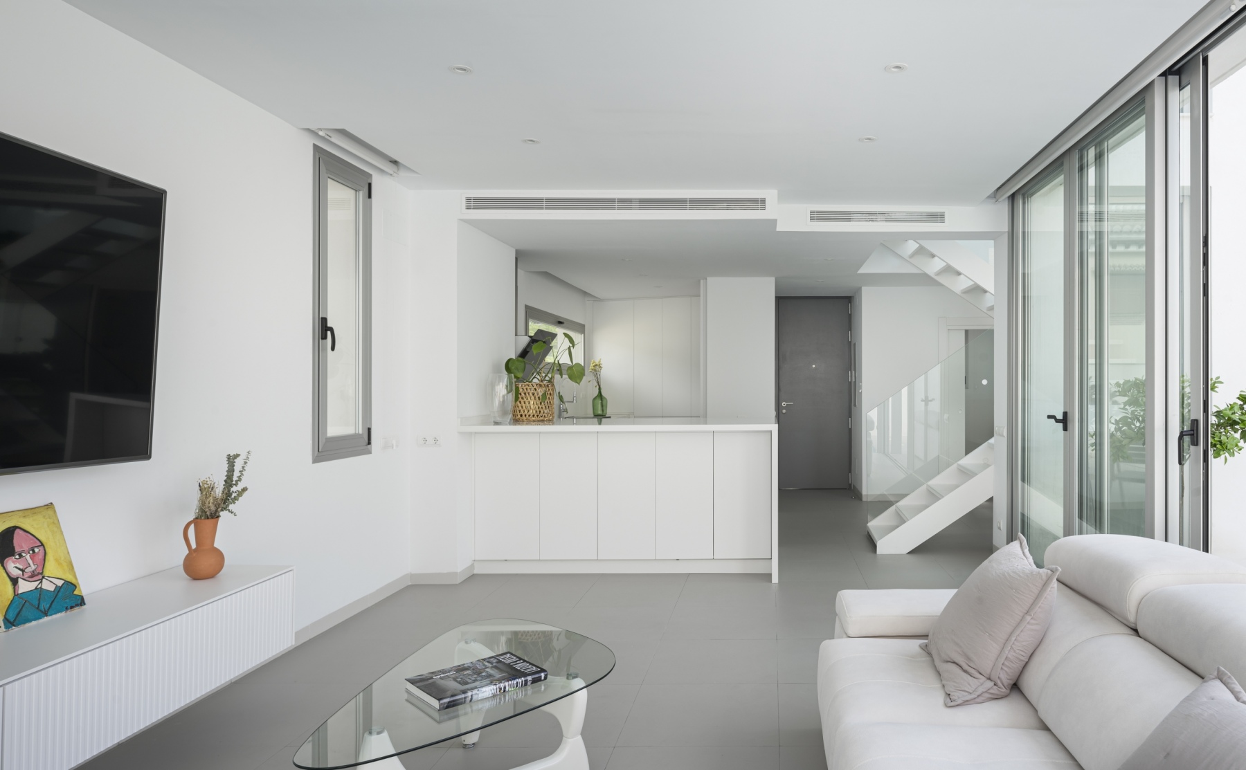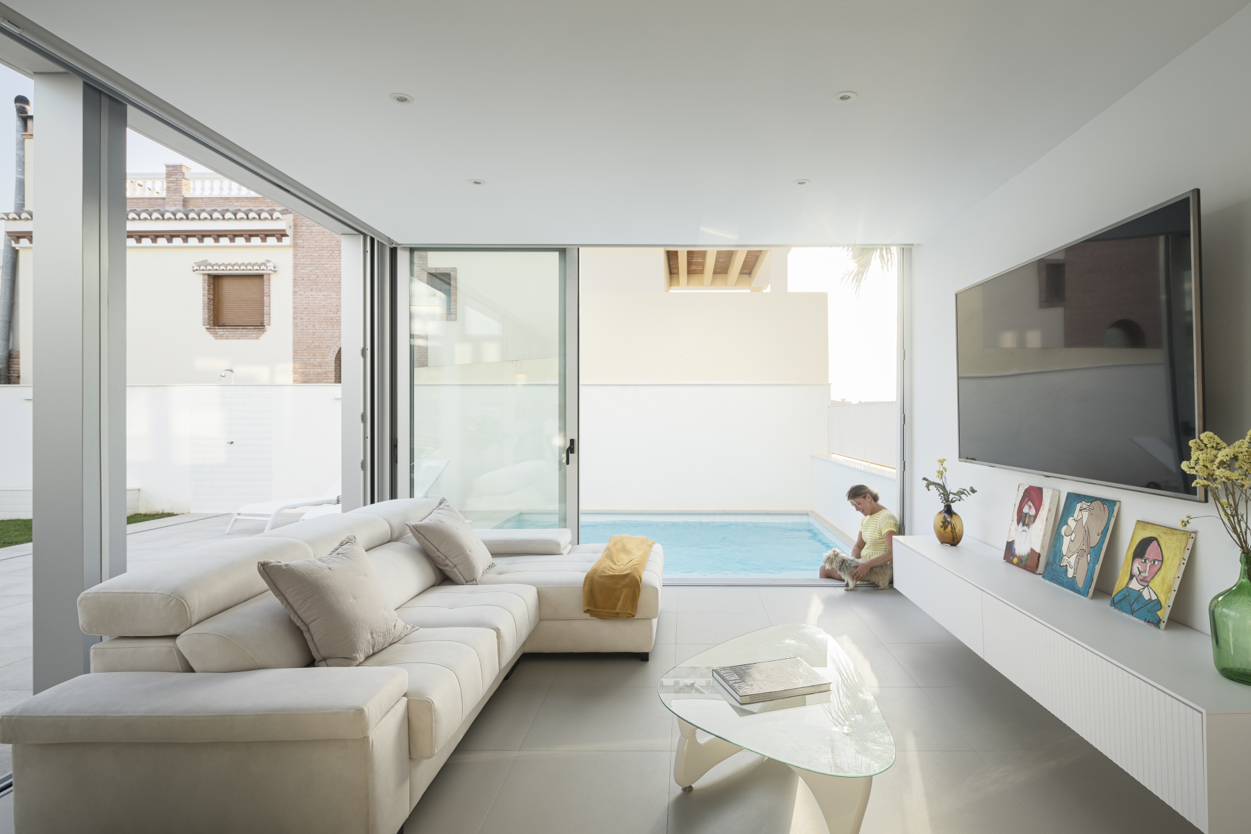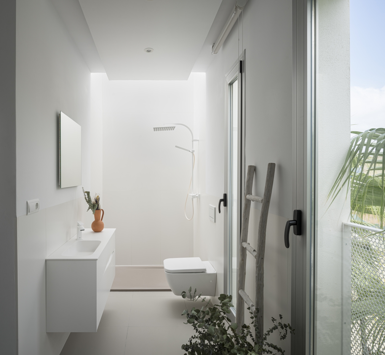 El diálogo entre las torre-alminares de la época mudéjar, tan presentes en el municipio de Vélez-Málaga y la Axarquía, y la chimenea de la antigua fábrica de orujo con el proyecto, se traduce en la materialización de un gran volumen de ladrillo cerámico cara vista hacia las tres fachadas exteriores del solar. Hacia el interior, un gran patio blanco perfora el volumen, generando viviendas con dobles ventilaciones e iluminación natural.